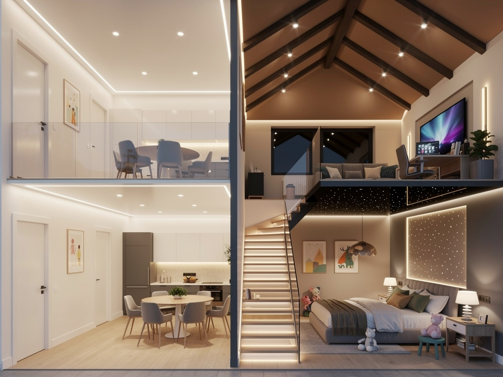 Был дом, где мансарда сначала хранила коробки «на всякий случай». Через пару лет хозяин созрел на кабинет. Мы сделали матовый тёплый потолок по скатам, добавили световую линию вдоль стола и несколько точек над зоной дивана. Сейчас он говорит: «Это единственное место, где я действительно могу думать».