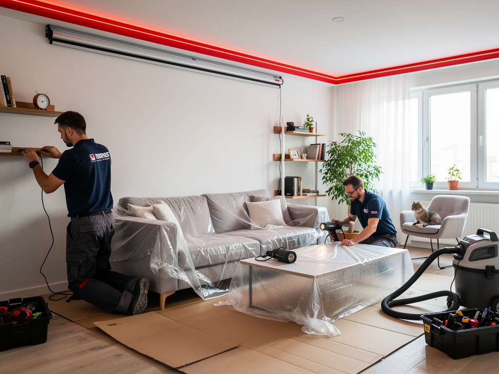 Монтаж в живой квартире — это всегда вызов. А ну-ка, представьте: дети носятся, кот шарится под ногами, а бригада с тепловой пушкой в руках