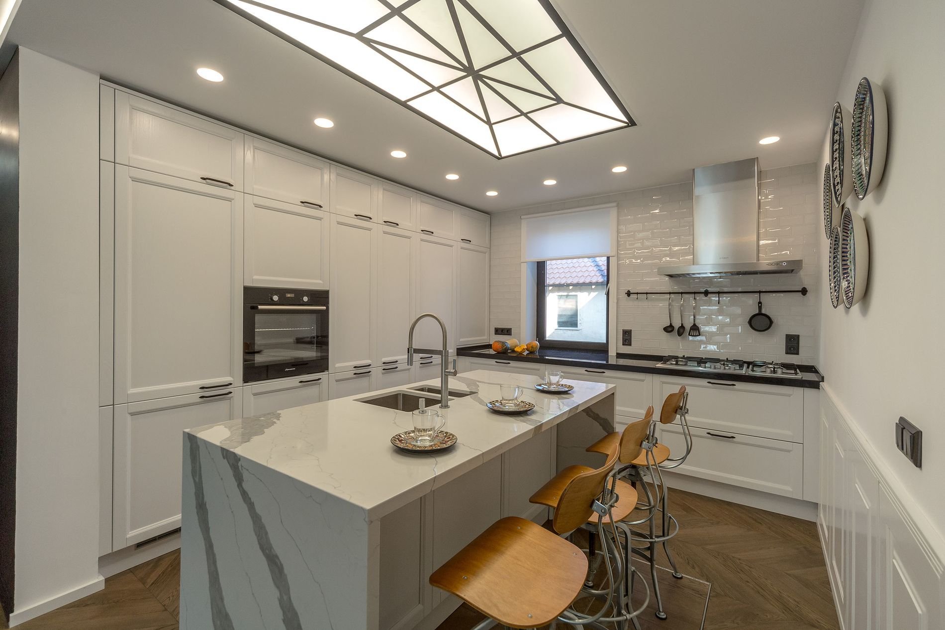 Хороший потолок на кухне — это не самый модный и не самый яркий вариант. Это решение, которое правильно подобрано под режим готовки, размер помещения, свет, вентиляцию и общую архитектуру кухни. Когда эти условия соблюдены, потолок работает долго, выглядит чисто и не создает лишних проблем.
