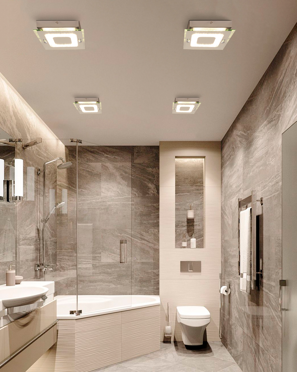 Главная ошибка здесь в том, что ванную часто воспринимают как «маленькую комнату, где все просто». На деле как раз в небольших влажных помещениях требования к потолку выше. Нужно учесть пар, капли воды, работу вытяжки, размещение светильников, обход труб, ревизионные зоны, доступ к коммуникациям и общее ощущение пространства. В ванной нет лишних сантиметров, поэтому любая неточность сразу бросается в глаза.