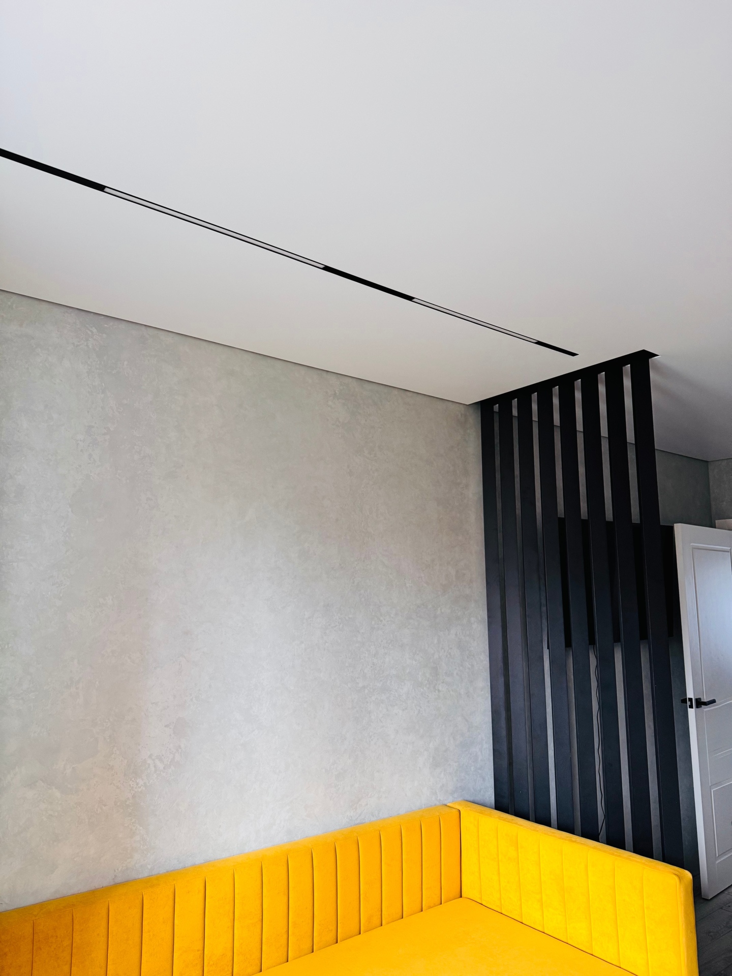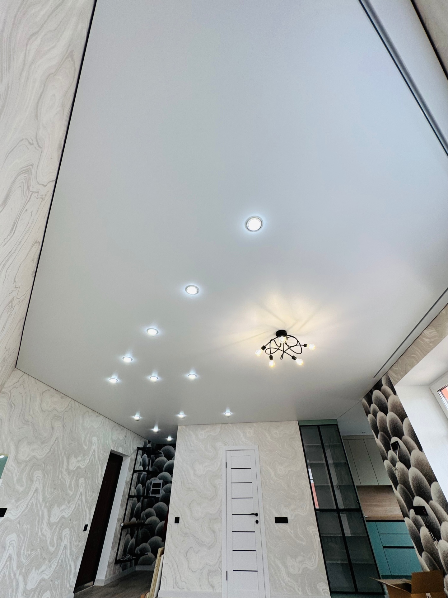 Например, на матовом потолке свет обычно воспринимается спокойнее. На глянцевом отражения работают сильнее, поэтому ошибка в схеме освещения становится заметнее. Если поставить слишком много приборов или разместить их без учета мебели, зеркал и окон, потолок перестает быть фоном и начинает показывать все блики и нарушения осей.