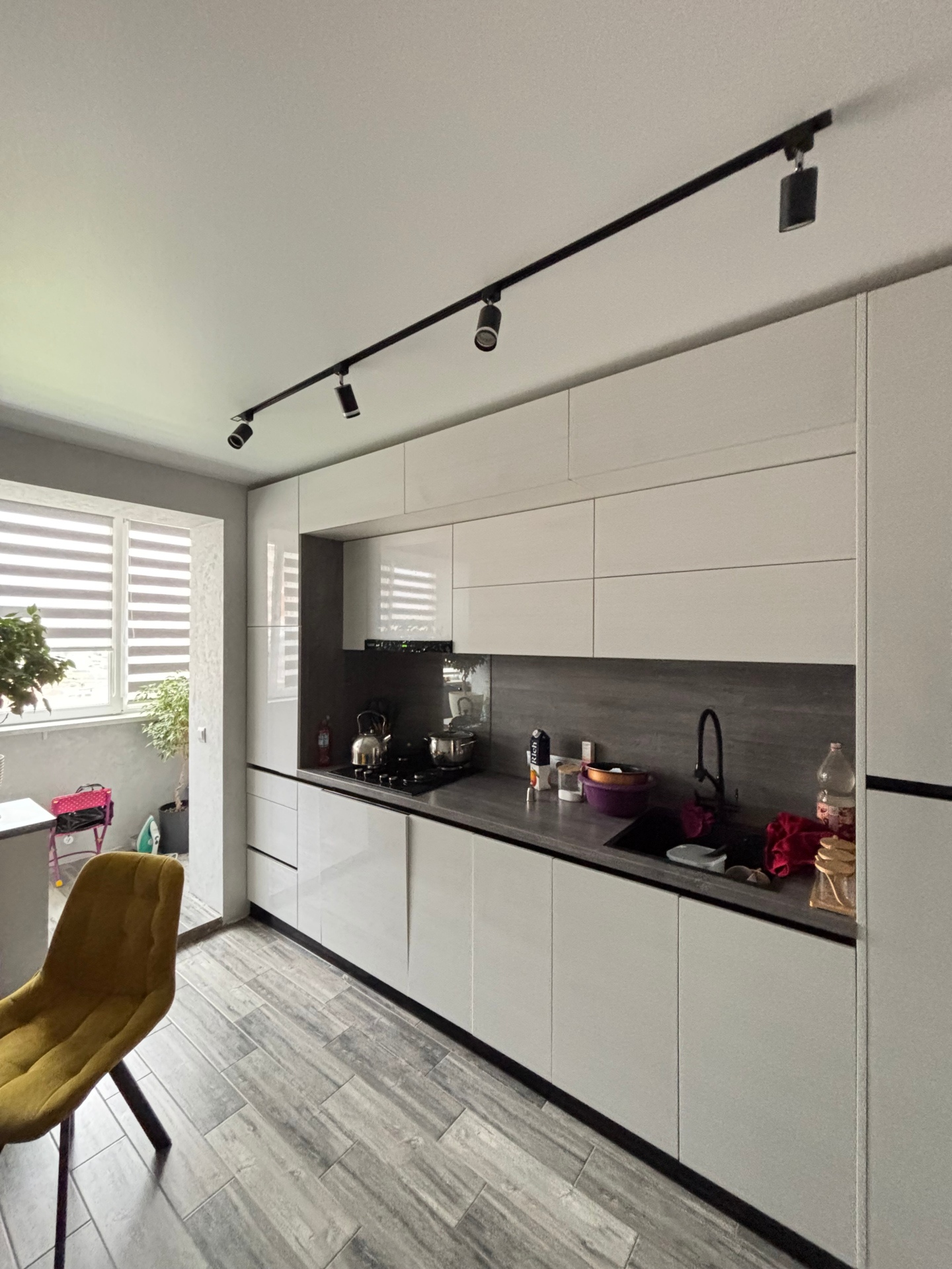 Лучше всего теневое примыкание работает в современных интерьерах, где важны чистые линии и визуальный порядок. Это спальни, гостиные, кухни-гостиные, коридоры, кабинеты и другие помещения, где потолок должен выглядеть строго и спокойно, без лишнего декора. Особенно выигрышно такой узел смотрится с матовыми светлыми полотнами, скрытыми карнизами, встроенным светом и ровной геометрией помещения.