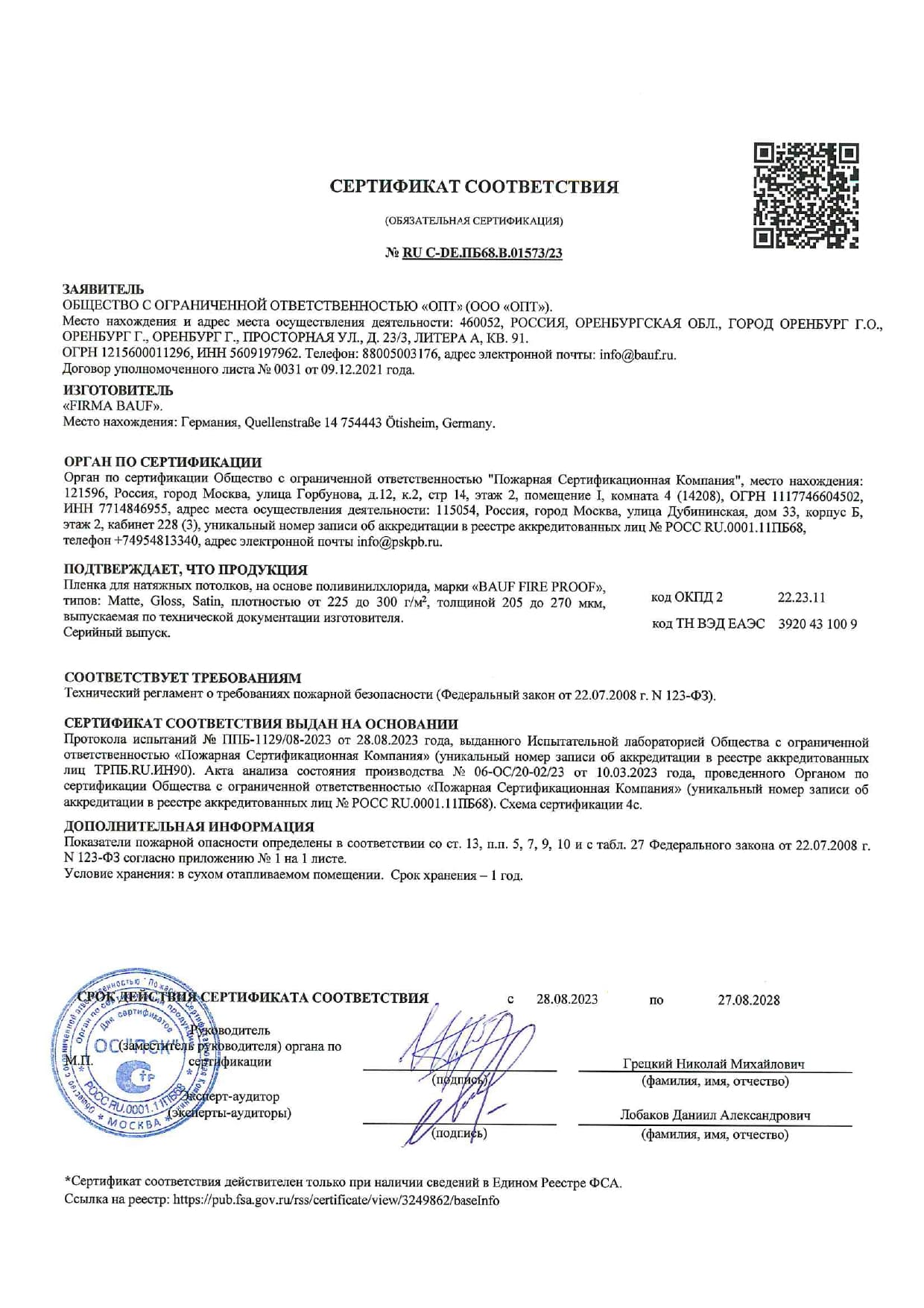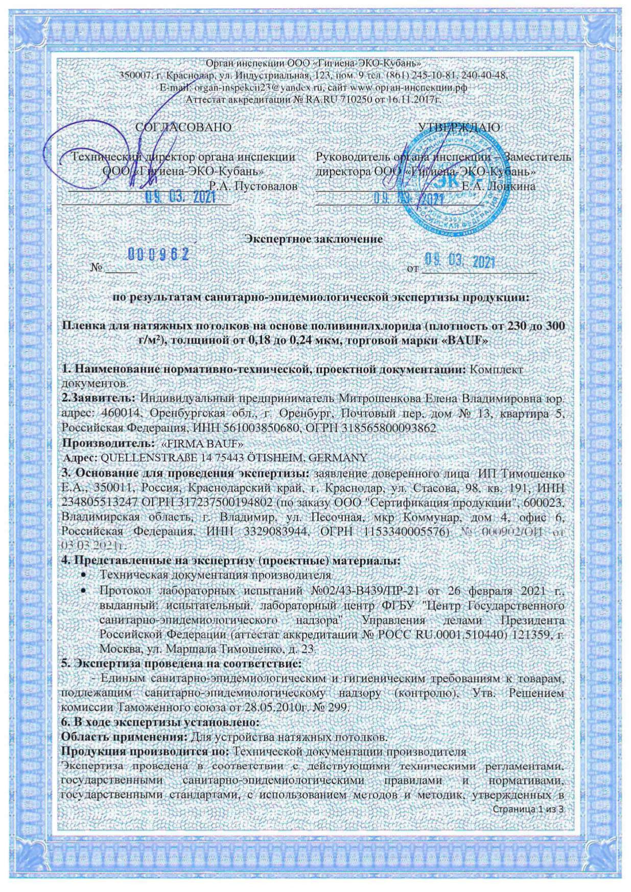 Плёнки Bauf проходят испытания на соответствие европейским нормам по составу и эмиссии. Для конечного пользователя это означает: