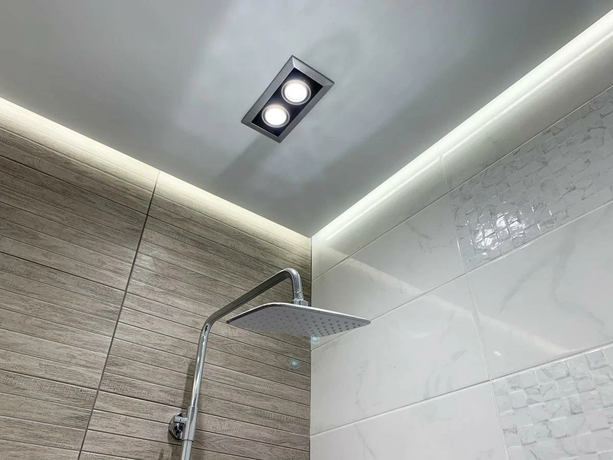 Натяжные потолки в санузел — практичность, гигиена и визуальный объём