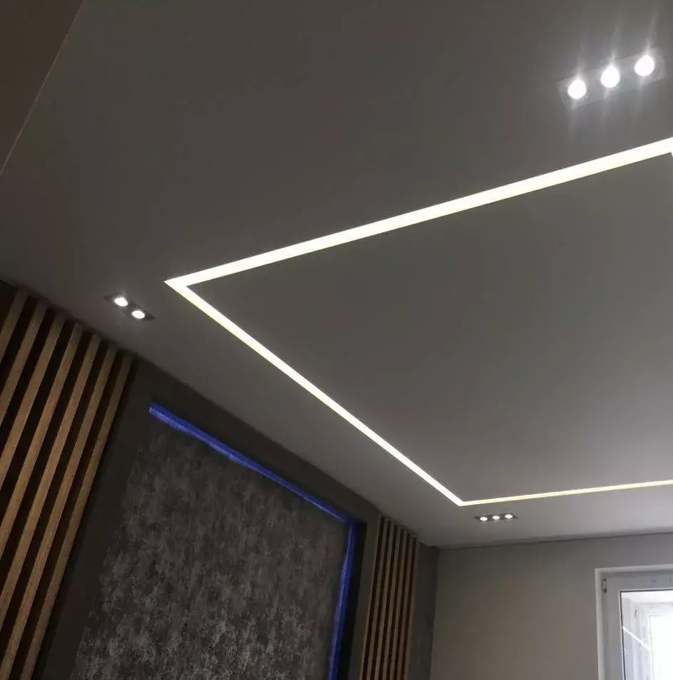 В галерее — фото контурных потолков с теплыми и нейтральными температурами, примеры зонирования кухни-гостиной, минималистичные спальни, коридоры с эффектом «туннеля», комбинации с точечными светильниками и скрытыми карнизами. По запросу предоставим узлы в разрезе и спецификации профилей.