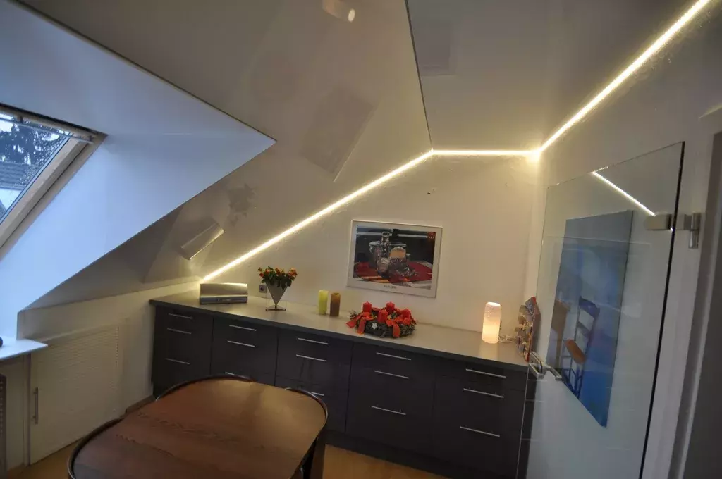 Натяжные потолки на мансарде: технологичный способ оформить сложную геометрию