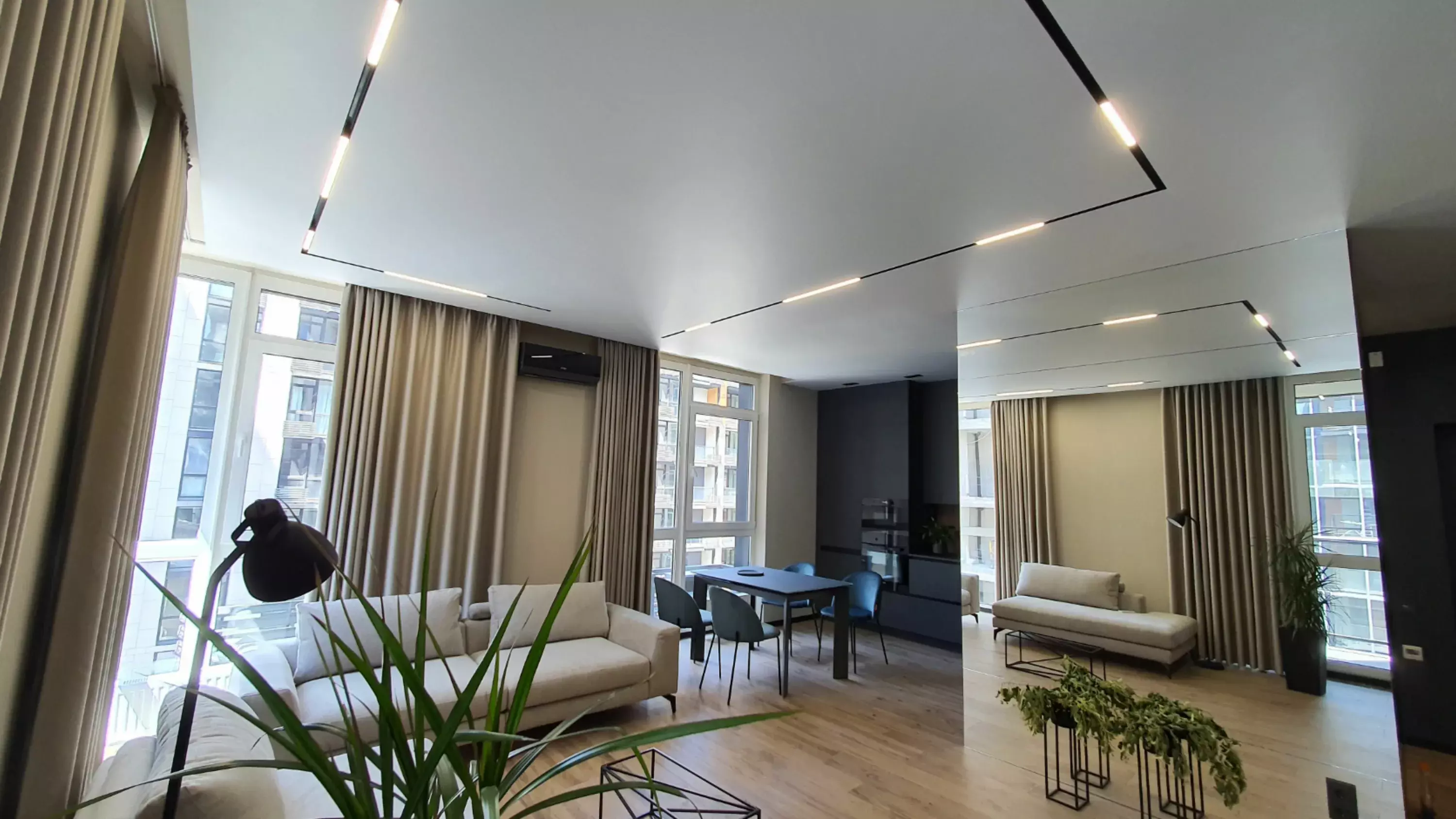 Натяжные потолки с трековым освещением: современный свет без компромиссов
