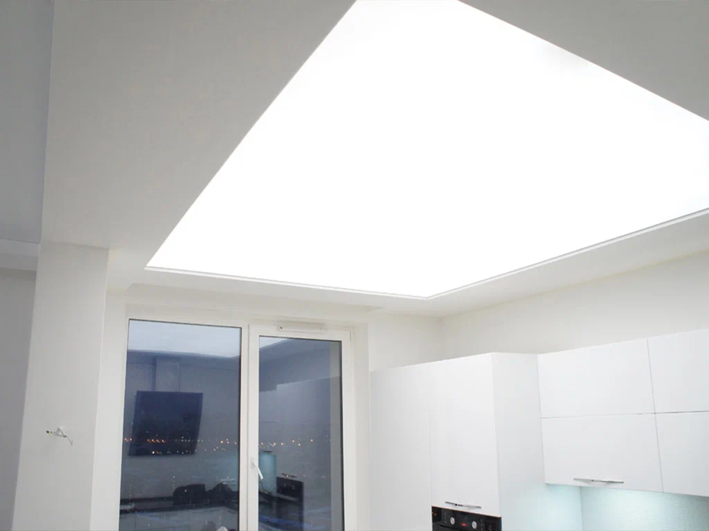 Светопропускающие (транслюцентные) натяжные потолки — это системы, где основное полотно из ПВХ или ткани работает как рассеиватель света. Источники устанавливаются за плоскостью полотна, а сам потолок выглядит как единый «светильник» или тонко подсвеченная плоскость. При выключенном свете покрытие воспринимается как обычный натяжной потолок, а при включении подсветки даёт равномерное свечение. Такое решение одинаково уместно в жилых и коммерческих интерьерах, поддерживает современные сценарии освещения и позволяет реализовать эффектные дизайнерские идеи. Можно купить базовый комплект или заказать монтаж «под ключ» с проектом подсветки и точной ценой за м2.