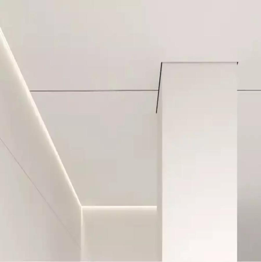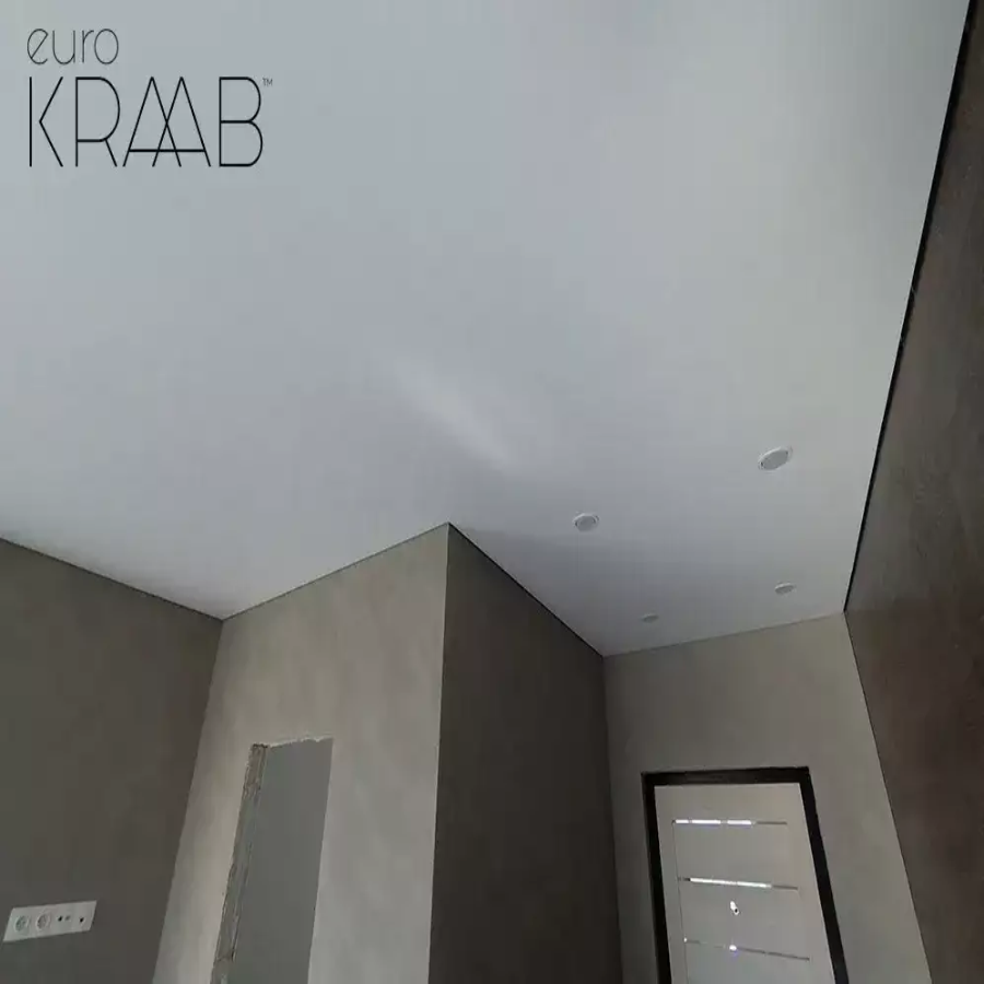 Теневой натяжной потолок EuroKraab формирует аккуратный зазор 6 мм по периметру, создавая эффект лёгкого «отрыва» плоскости от стен. Система исключает необходимость маскировочных вставок и потолочного плинтуса, подчёркивает геометрию помещения и визуально добавляет высоты. Точный профиль и надёжная фиксация полотна обеспечивают чёткие углы, стабильное натяжение и внешний вид, максимально похожий на ГКЛ-отделку, при этом сохраняются преимущества натяжной технологии: быстрый монтаж, чистота работ, возможность интеграции света и коммуникаций.