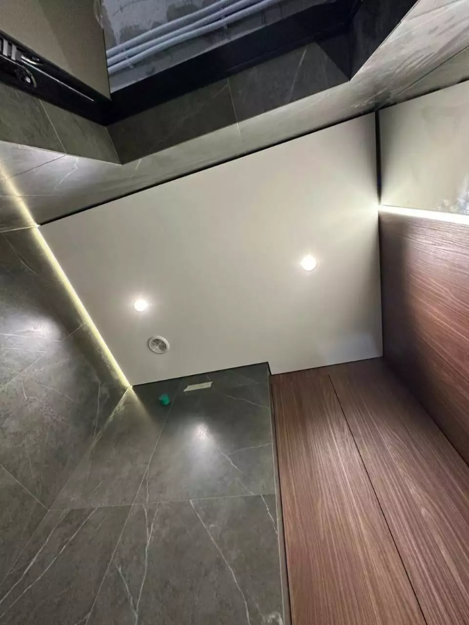 • Спальни — ткань или ПВХ-мат/сатин, тёплый свет 2700–3000 K по периметру.
