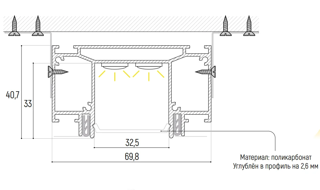 SLOTT CANYON — это профили с жёстким поликарбонатным рассеивателем, который может быть утоплен в профиль или располагаться у края. Такое решение позволяет: