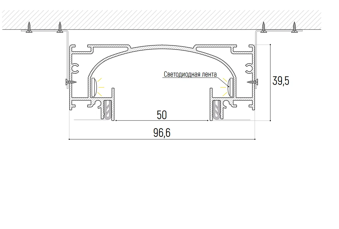 Световая линия SLOTT LINE предназначена для установки вдоль потолочной поверхности с возможностью размещения светодиодных лент или треков. Демпферная система обеспечивает плотное бесщелевое примыкание к натяжному полотну, а конструкция подходит как для открытого монтажа, так и с использованием рассеивателя из полупрозрачного материала.