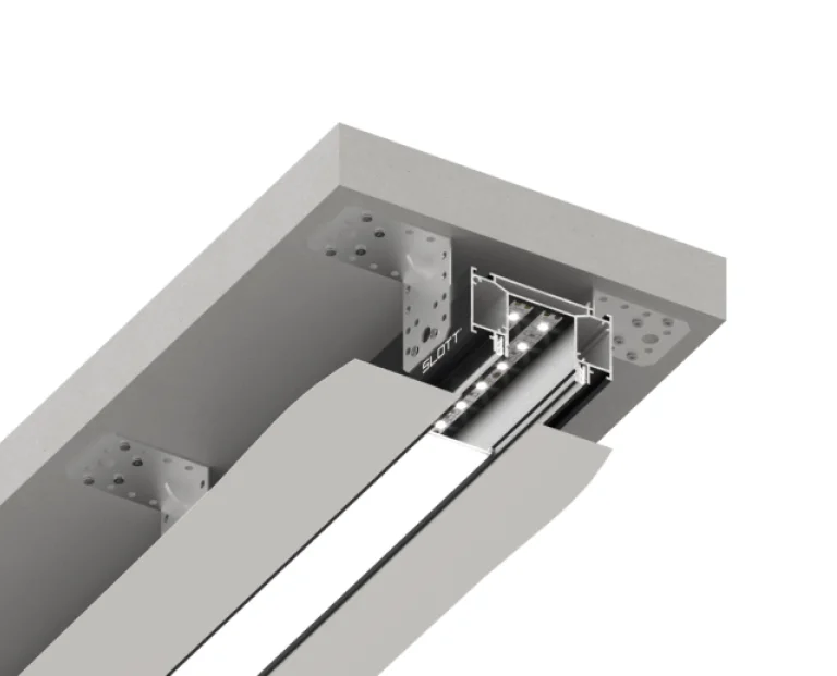 Нишевые решения SLOTT представляют собой современный способ интеграции света в потолок. Система может использоваться в открытом виде или с рассеивателем, создавая мягкое и равномерное освещение без видимых источников.