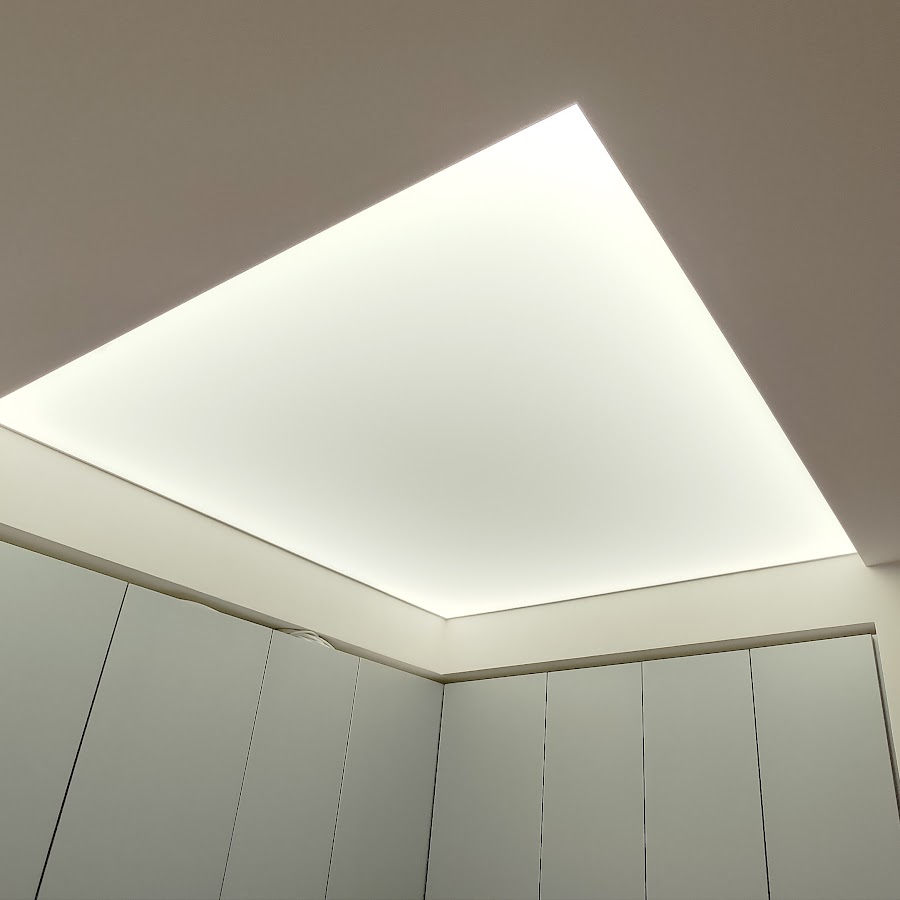 Используется для формирования конструкций, расположенных ниже основного потолка. В такой профиль заправляется полупрозрачное полотно, а внутренняя подсветка создаёт глубокий и мягкий световой эффект.