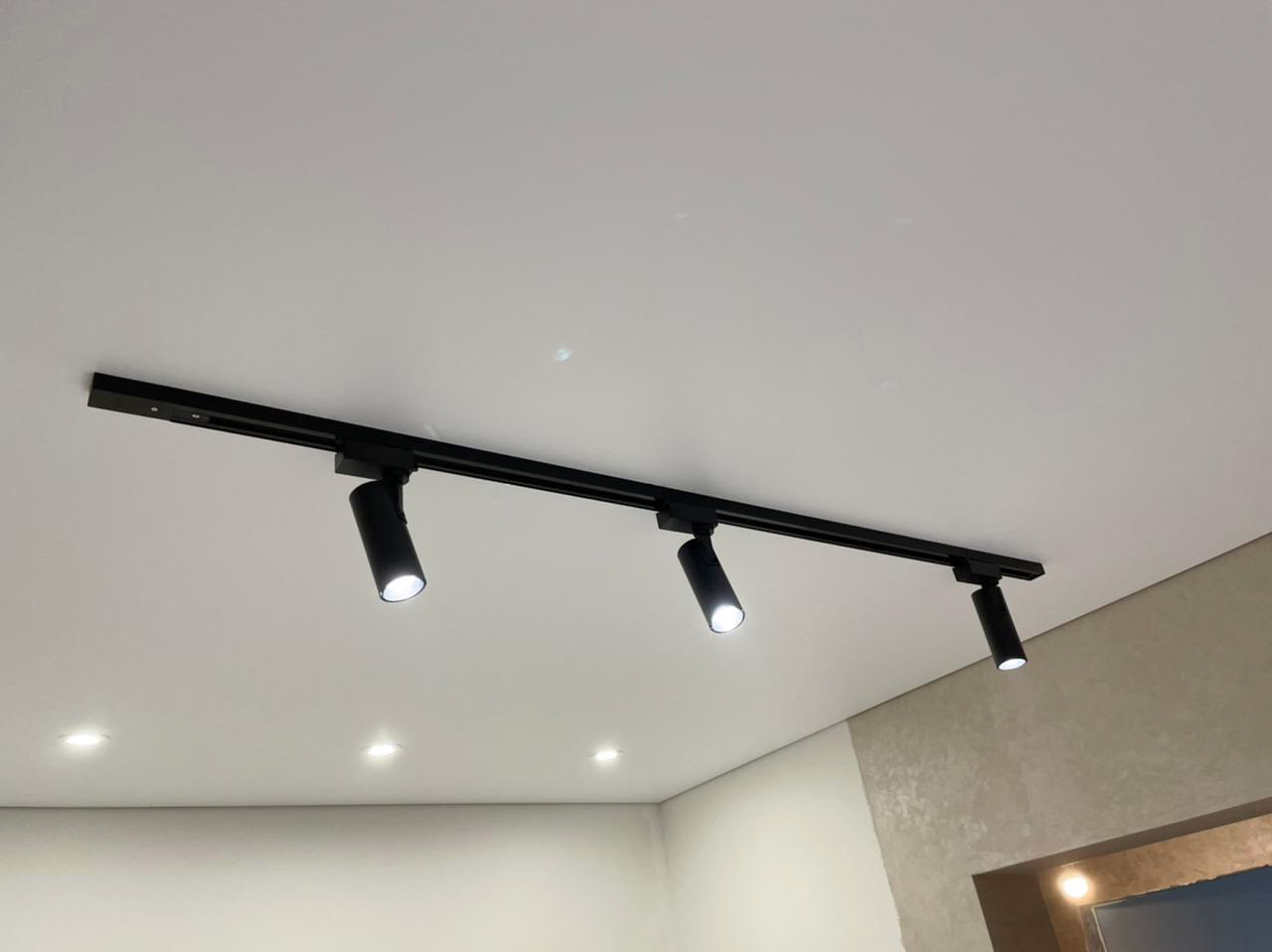 Накладная трековая система — лучший вариант для случаев, когда хочется получить гибкое и качественное освещение без вмешательства в конструкцию натяжного потолка.