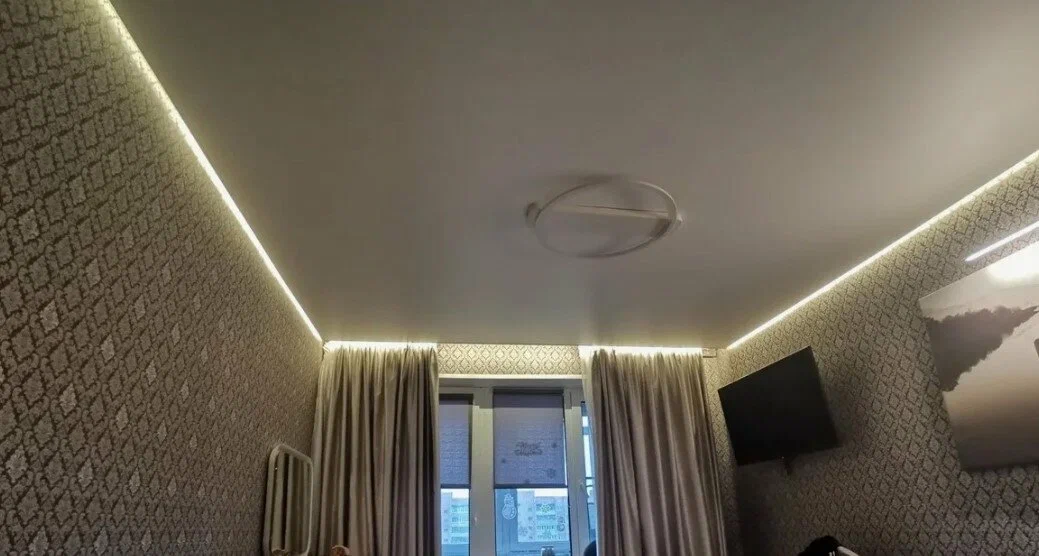 Светодиодная лента — один из самых универсальных источников света для натяжных потолков. Благодаря гибкости, различным типам свечения и широкому диапазону мощностей ленты подходят для декоративной подсветки, акцентного освещения и формирования полноценного светового сценария в интерьере. Конструкция ленты позволяет легко интегрировать её в профили, ниши, контуры потолка и световые линии.