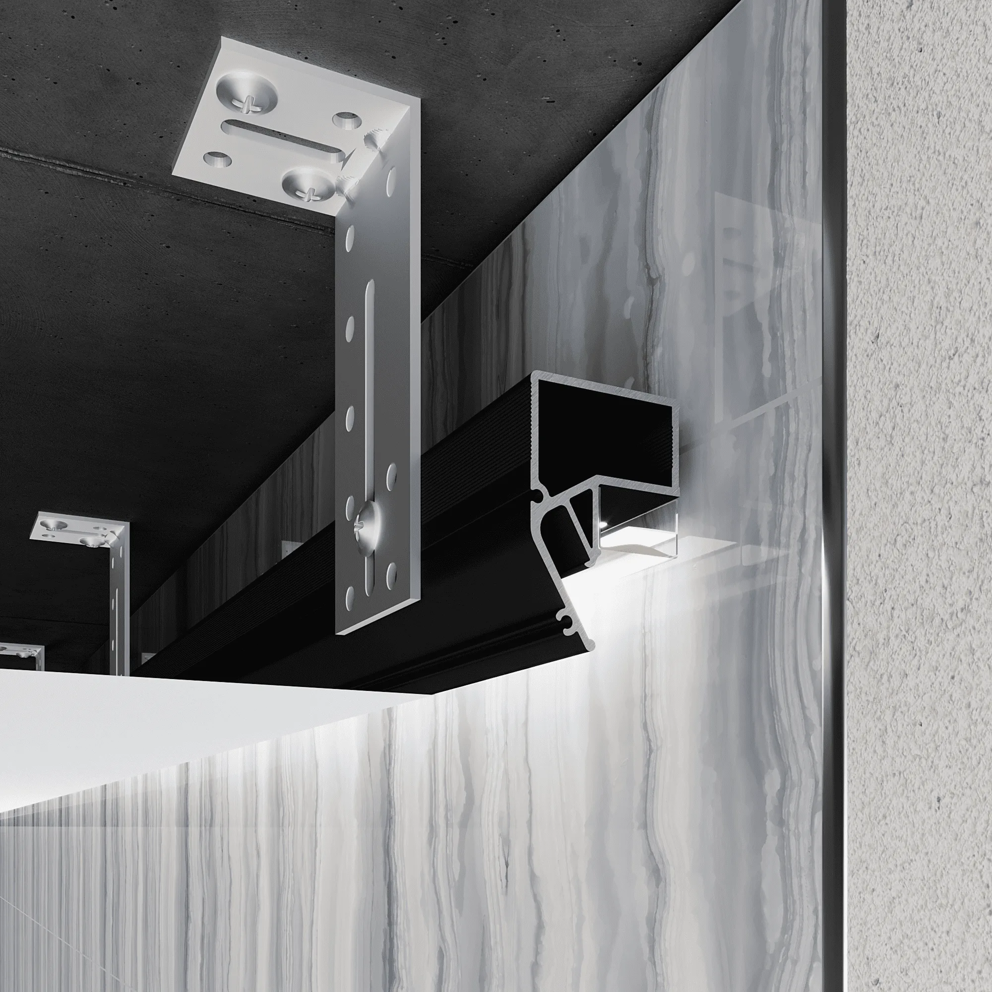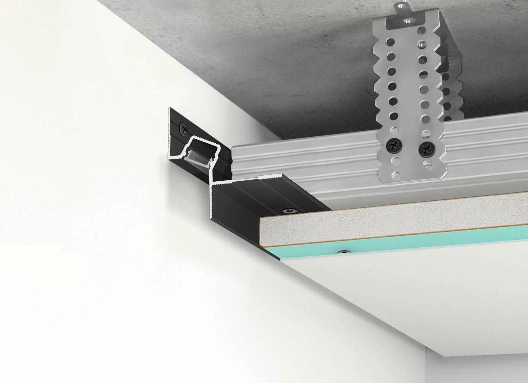 Профиль должен быть жёстким, точно геометрически ровным и выдерживать постоянную нагрузку натяжения полотна. Поэтому профессиональные системы выполнены из алюминия. Благодаря высокой прочности такие профили служат много лет, сохраняя форму и обеспечивая ровный световой контур по всему периметру помещения.