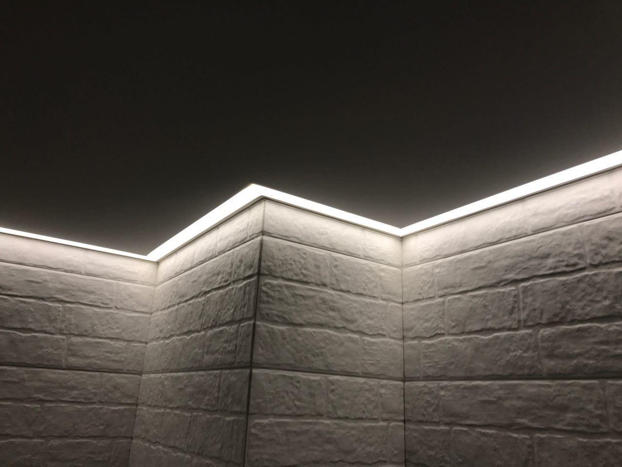 - Светодиодная лента размещается внутри профиля и подсвечивает контур мягким светом.