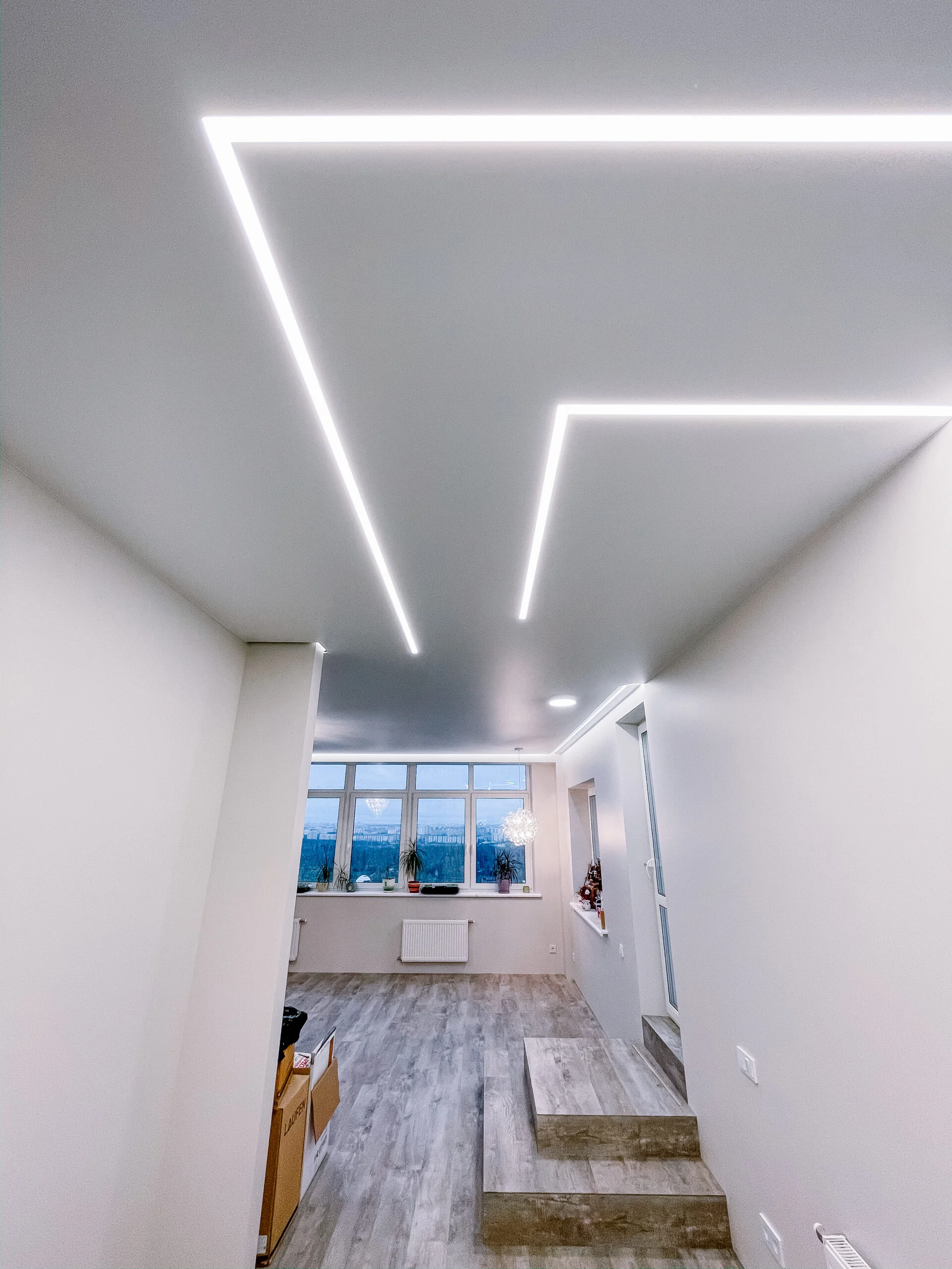 Такая вставка особенно полезна при небольших неровностях стен, когда геометрия основания далека от идеальной, а итоговый потолок должен выглядеть строго и аккуратно.