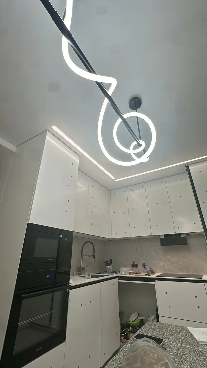 В день монтажа приехали Паша и Артём.Ребята сразу осмотрели комнату, уточнили что куда будет уходить, и приступили к работе.Работали аккуратно, без лишнего шума, хотя инструментов у них было довольно много.По ходу пришлось чуть изменить одно место под световую линию — в проекте смотрелось одно, а вживую по-другому, решили на месте.Договорился с ними по мелочам, они всё объяснили, почему так лучше.По цене вышло ровно как в договоре, без добавлений, что для меня важно, потому что был строгий бюджет.В итоге получилось нормально, ровно так, как я рассчитывал.Спасибо Эдуарду, Насте и ребятам за работу.