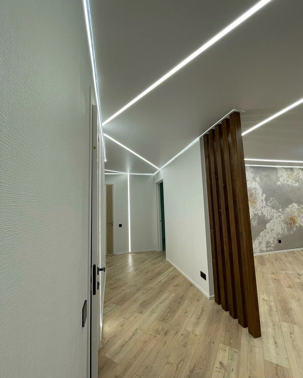 Отдельно хочу отметить беспроцентную внутреннюю рассрочку — для меня это оказалось очень удобным, потому что ремонт всегда требует дополнительных расходов. В итоге потолки получились ровные, аккуратные, световые линии лёгкие и аккуратно смотрятся в комнате. Результатом осталась довольна. Если дальше буду делать потолки — обращусь сюда же. Рекомендую.