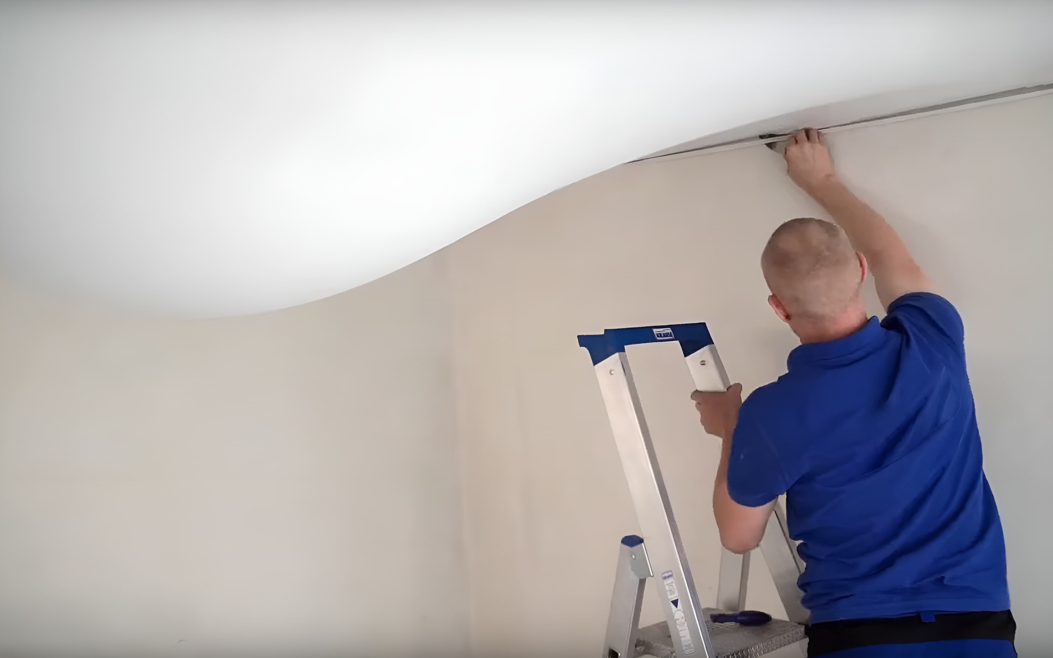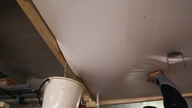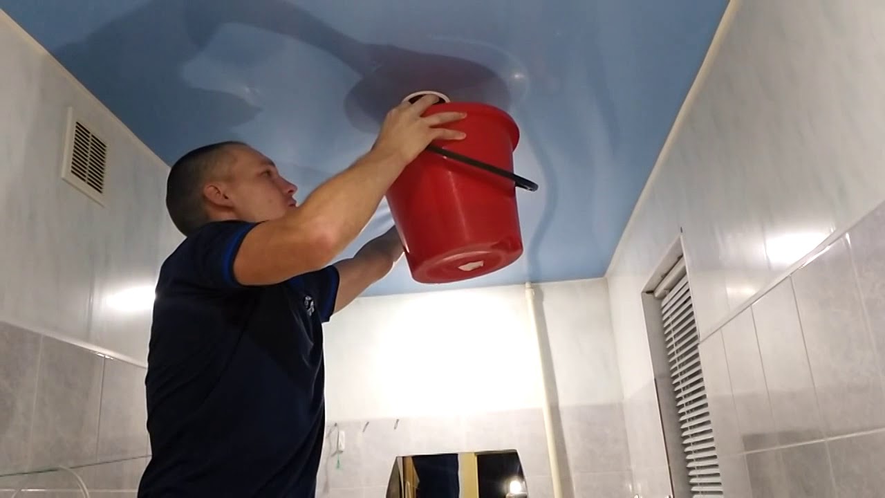 Устранение залива натяжного потолка: безопасный слив воды и восстановление